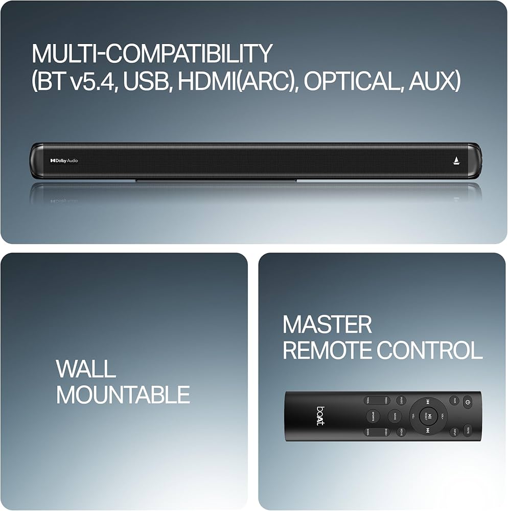 Multichannel Connectivity: Stay connected to the sound with AUX, USB, optical, HDMI (ARC) coupled with Bluetooth v5.4 wireless compatibility for the utmost comfort.